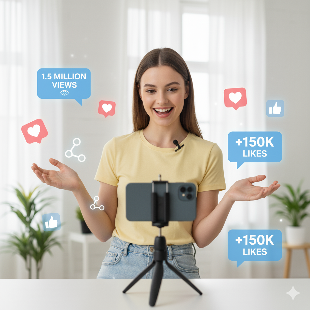 Nos créateurs de contenu produisent des vidéos virales autour de la marque. Ils transforment le brief de l'entreprise en contenu authentique et engageant, parfaitement adapté à TikTok, Instagram ou YouTube Shorts.